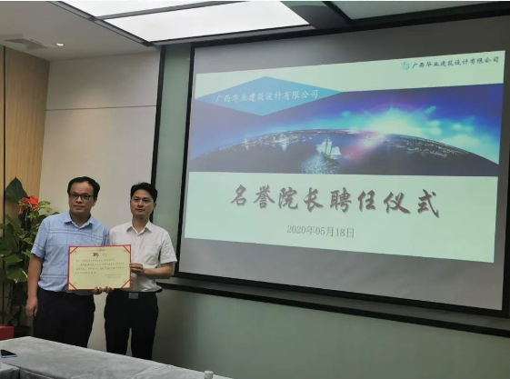 2020年05月18日,廣西華業(yè)建筑設(shè)計(jì)有限公司名譽(yù)院長——張信貴教授聘任儀式在華業(yè)建筑設(shè)計(jì)有限公司會議室隆重舉行,華業(yè)集團(tuán)董事長龍其生、副總裁兼華業(yè)建筑設(shè)計(jì)公司總經(jīng)理龐樹玉應(yīng)邀出席本次活動并講話。  &nb..